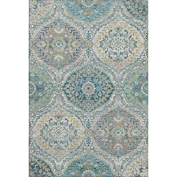 Mayfield Premium Machine Washable Abstract AMF1990 Teal 10 ft. x 14 ft. Area Rug