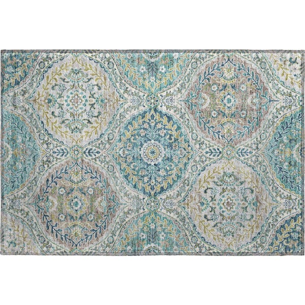 Mayfield Premium Machine Washable Abstract AMF1990 Teal 2 ft. x 3 ft. Accent Rug