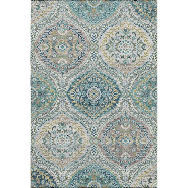 Mayfield Premium Machine Washable Abstract AMF1990 Teal 3 ft. x 5 ft. Area Rug