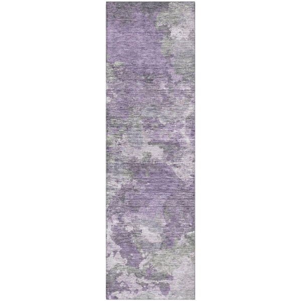 Mayfield Premium Machine Washable Abstract AMF1991 Purple 2 ft. x 7 ft. Runner Rug