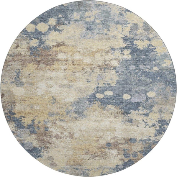 Mayfield Premium Machine Washable Abstract AMF1992 Gold 8 ft. x 8 ft. Round Rug