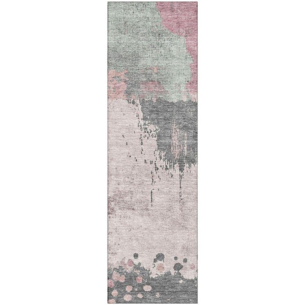 Mayfield Premium Machine Washable Abstract AMF1994 Blush 2 ft. x 7 ft. Runner Rug