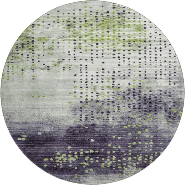 Mayfield Premium Machine Washable Abstract AMF1995 Aloe 8 ft. x 8 ft. Round Rug