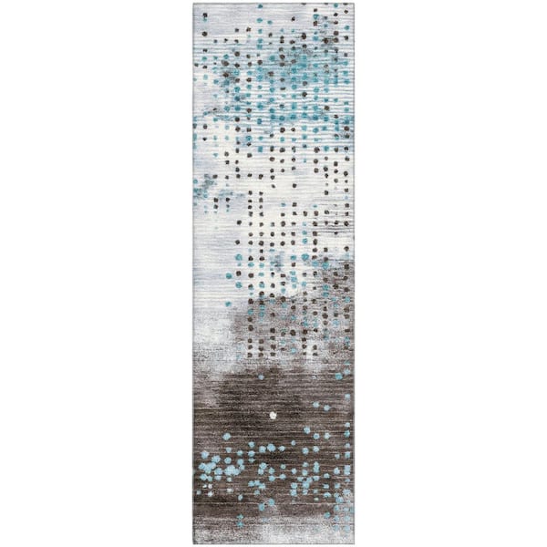 Mayfield Premium Machine Washable Abstract AMF1995 Teal 2 ft. x 7 ft. Runner Rug