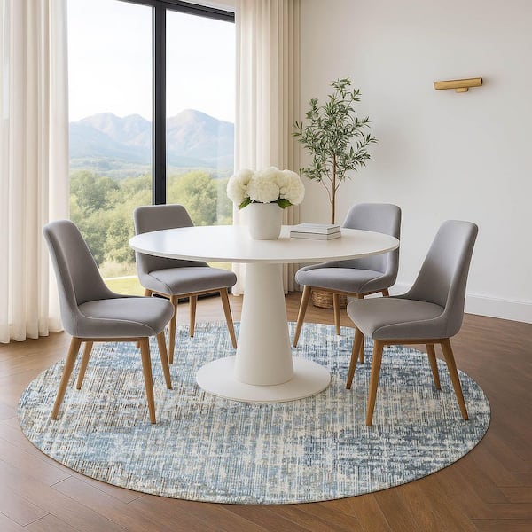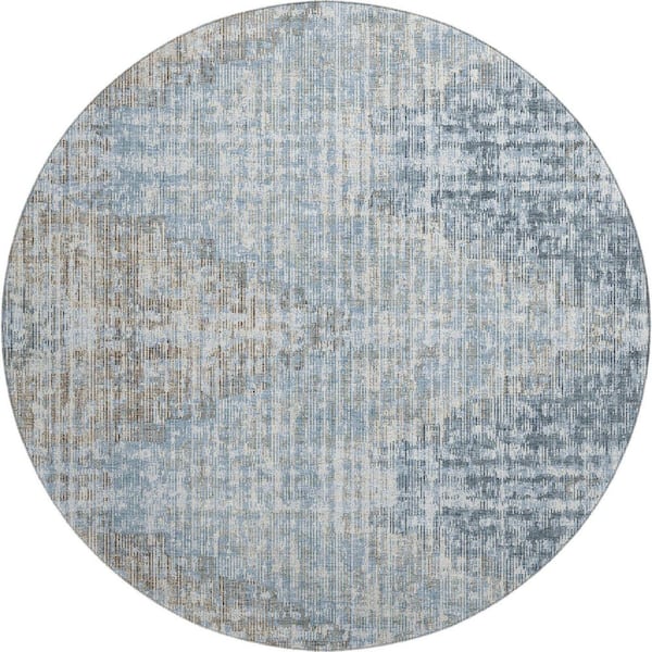 Mayfield Premium Machine Washable Abstract AMF1996 Denim 8 ft. x 8 ft. Round Rug