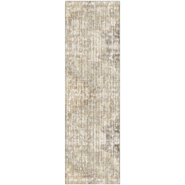 Mayfield Premium Machine Washable Abstract AMF1996 Khaki 2 ft. x 7 ft. Runner Rug