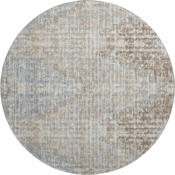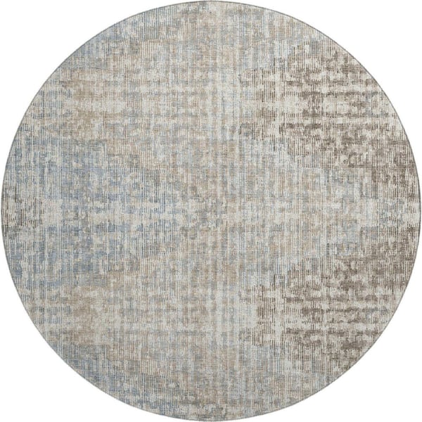 Mayfield Premium Machine Washable Abstract AMF1996 Putty 8 ft. x 8 ft. Round Rug