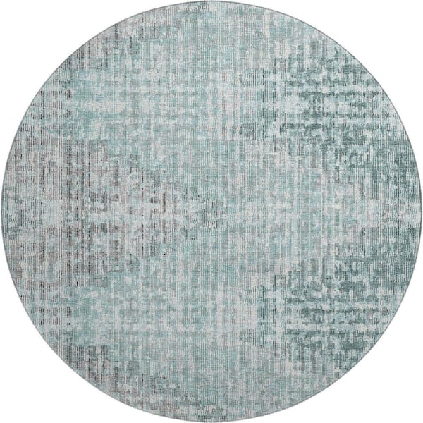 Mayfield Premium Machine Washable Abstract AMF1996 Teal 8 ft. x 8 ft. Round Rug