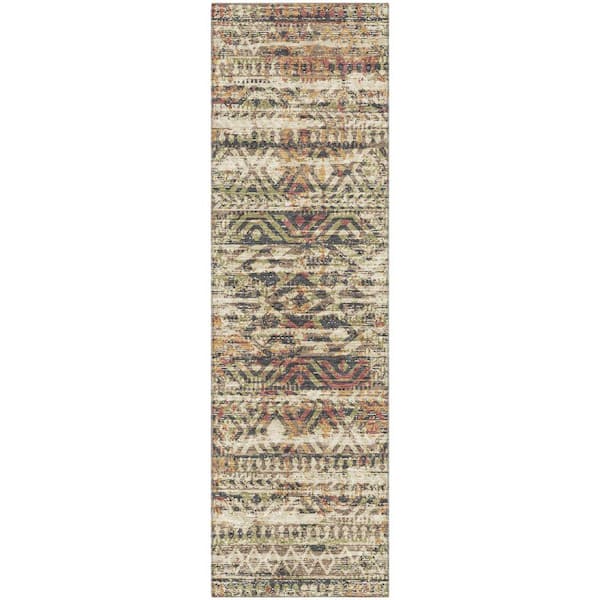 Mayfield Premium Machine Washable Abstract AMF1997 Beige 2 ft. x 7 ft. Runner Rug