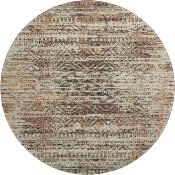 Mayfield Premium Machine Washable Abstract AMF1997 Beige 8 ft. x 8 ft. Round Rug