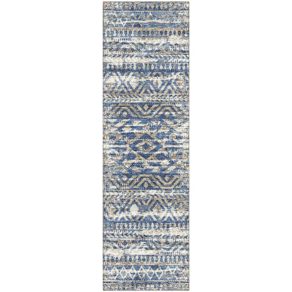 Mayfield Premium Machine Washable Abstract AMF1997 Blue 2 ft. x 7 ft. Runner Rug