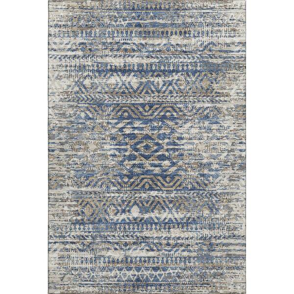 Mayfield Premium Machine Washable Abstract AMF1997 Blue 3 ft. x 4 ft. Area Rug