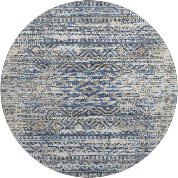 Mayfield Premium Machine Washable Abstract AMF1997 Blue 8 ft. x 8 ft. Round Rug