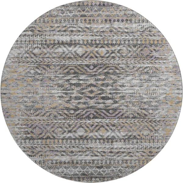Mayfield Premium Machine Washable Abstract AMF1997 Gray 8 ft. x 8 ft. Round Rug