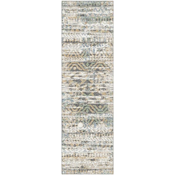 Mayfield Premium Machine Washable Abstract AMF1997 Ivory 2 ft. x 7 ft. Runner Rug