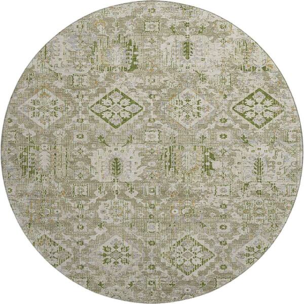 Mayfield Premium Machine Washable Abstract AMF1998 Fern 8 ft. x 8 ft. Round Rug