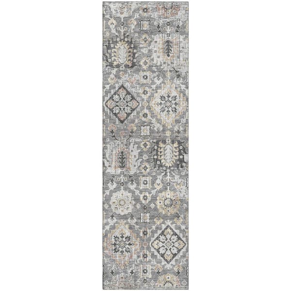 Mayfield Premium Machine Washable Abstract AMF1998 Gray 2 ft. x 7 ft. Runner Rug