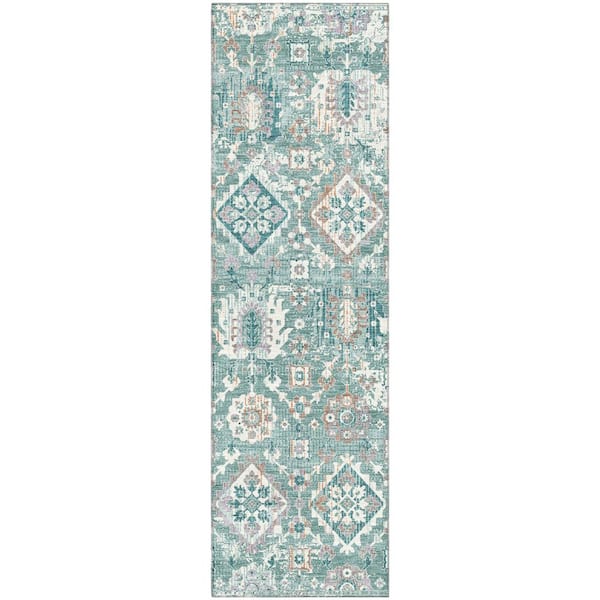 Mayfield Premium Machine Washable Abstract AMF1998 Seafoam 2 ft. x 7 ft. Runner Rug