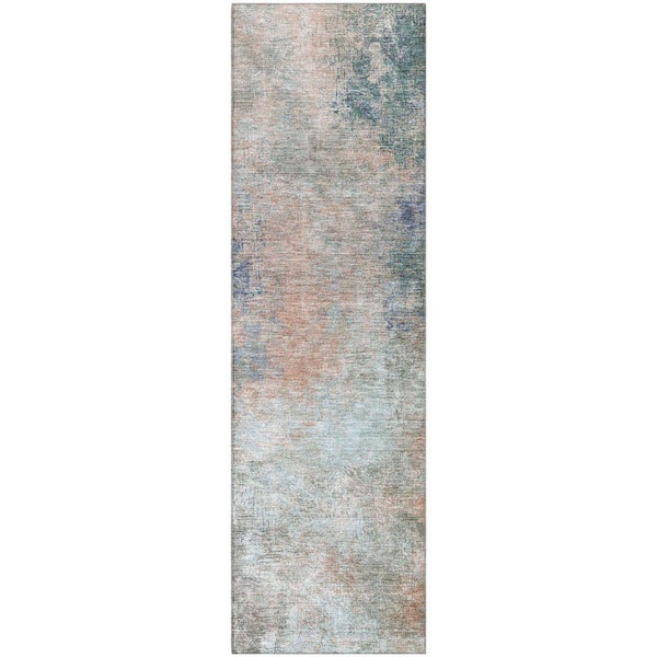 Mayfield Premium Machine Washable Abstract AMF1999 Copper 2 ft. x 7 ft. Runner Rug