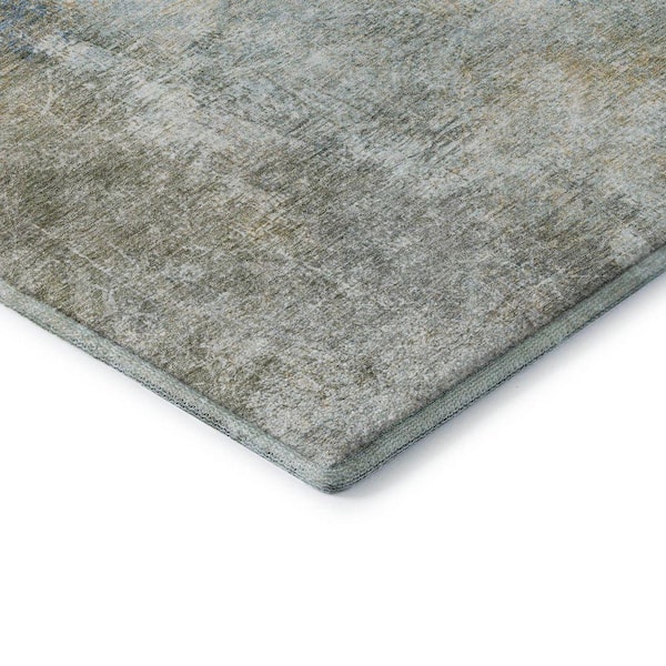 Mayfield Premium Machine Washable Abstract AMF1999 Khaki 8 ft. x 8 ft. Round Rug