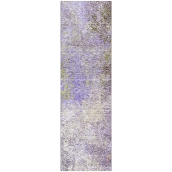 Mayfield Premium Machine Washable Abstract AMF1999 Purple 2 ft. x 7 ft. Runner Rug