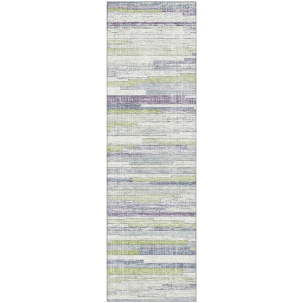 Mayfield Premium Machine Washable Abstract AMF2000 Aloe 2 ft. x 7 ft. Runner Rug