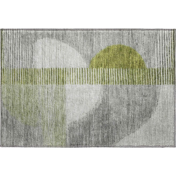 Mayfield Premium Machine Washable Abstract AMF2001 Olive 2 ft. x 3 ft. Accent Rug