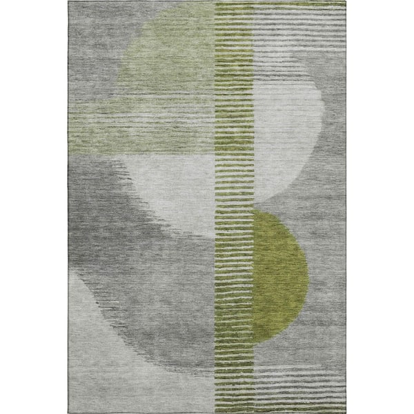 Mayfield Premium Machine Washable Abstract AMF2001 Olive 9 ft. x 12 ft. Area Rug