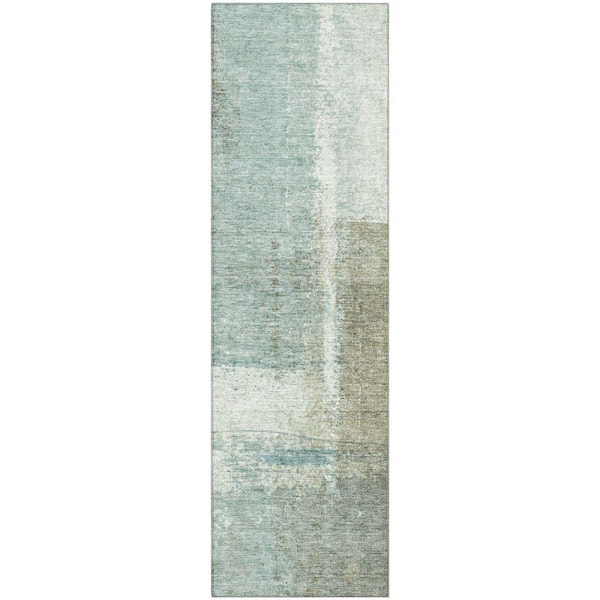 Mayfield Premium Machine Washable Abstract AMF2002 Seafoam 2 ft. x 7 ft. Runner Rug
