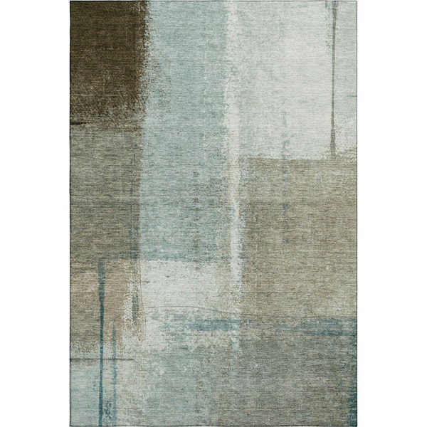 Mayfield Premium Machine Washable Abstract AMF2002 Seafoam 9 ft. x 12 ft. Area Rug