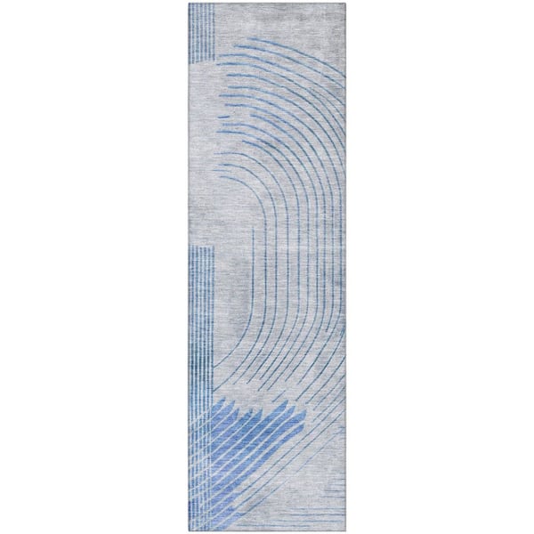 Mayfield Premium Machine Washable Abstract AMF2003 Blue 2 ft. x 7 ft. Runner Rug