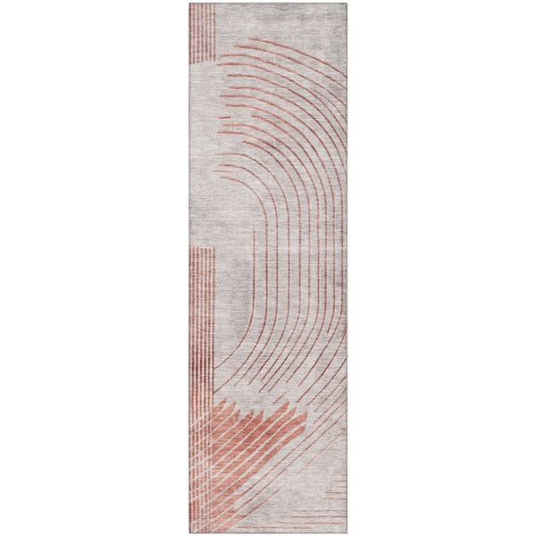 Mayfield Premium Machine Washable Abstract AMF2003 Salmon 2 ft. x 7 ft. Runner Rug