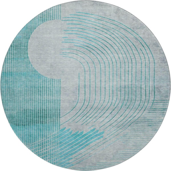 Mayfield Premium Machine Washable Abstract AMF2003 Teal 8 ft. x 8 ft. Round Rug
