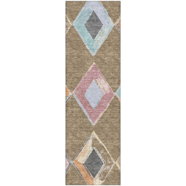 Mayfield Premium Machine Washable Abstract AMF2004 Brown 2 ft. x 7 ft. Runner Rug