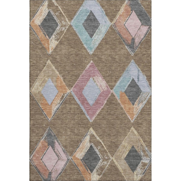 Mayfield Premium Machine Washable Abstract AMF2004 Brown 8 ft. x 10 ft. Area Rug