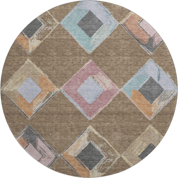 Mayfield Premium Machine Washable Abstract AMF2004 Brown 8 ft. x 8 ft. Round Rug