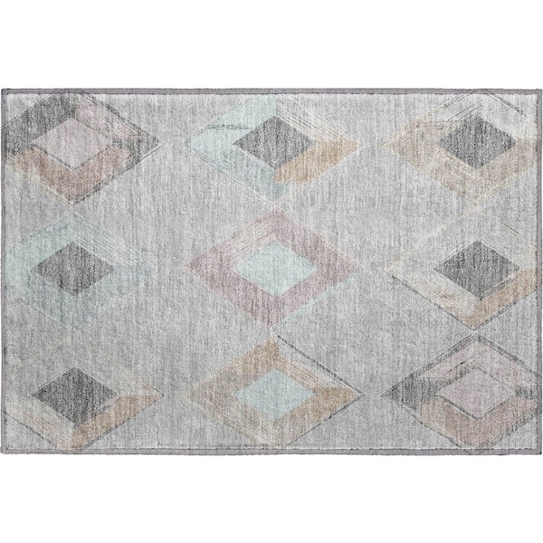 Mayfield Premium Machine Washable Abstract AMF2004 Gray 2 ft. x 3 ft. Accent Rug