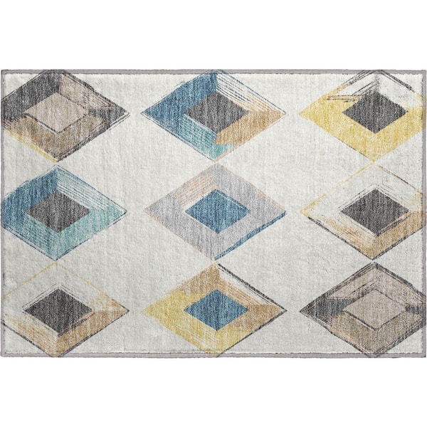 Mayfield Premium Machine Washable Abstract AMF2004 Ivory 2 ft. x 3 ft. Accent Rug