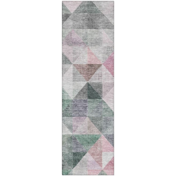 Mayfield Premium Machine Washable Abstract AMF2006 Blush 2 ft. x 7 ft. Runner Rug