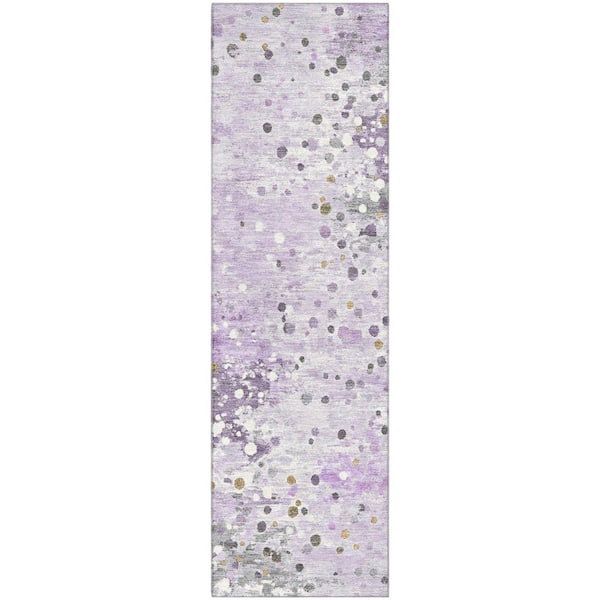 Mayfield Premium Machine Washable Abstract AMF2007 Lavender 2 ft. x 7 ft. Runner Rug