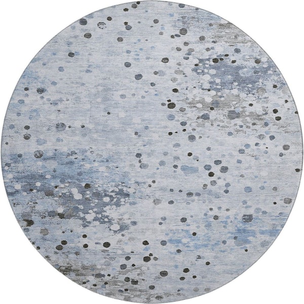 Mayfield Premium Machine Washable Abstract AMF2007 Sky 8 ft. x 8 ft. Round Rug