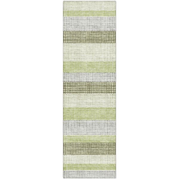 Mayfield Premium Machine Washable Abstract AMF2008 Aloe 2 ft. x 7 ft. Runner Rug