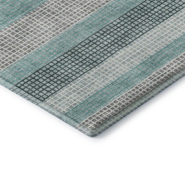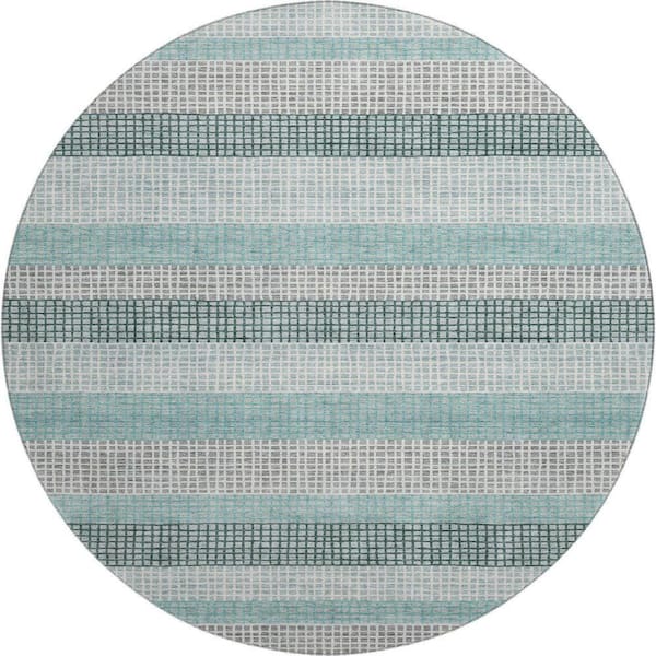Mayfield Premium Machine Washable Abstract AMF2008 Teal 8 ft. x 8 ft. Round Rug