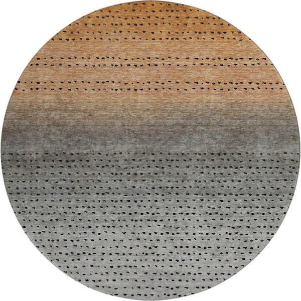 Mayfield Premium Machine Washable Abstract AMF2009 Copper 8 ft. x 8 ft. Round Rug