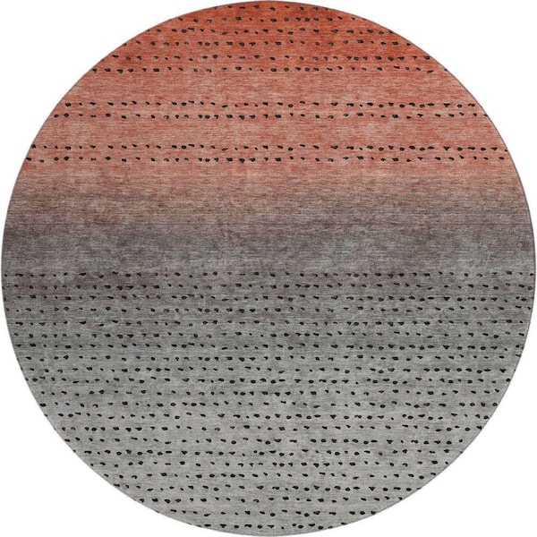 Mayfield Premium Machine Washable Abstract AMF2009 Paprika 8 ft. x 8 ft. Round Rug