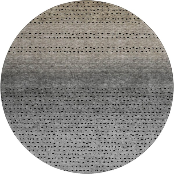 Mayfield Premium Machine Washable Abstract AMF2009 Taupe 8 ft. x 8 ft. Round Rug
