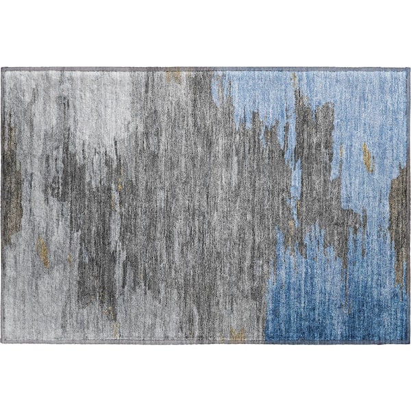 Mayfield Premium Machine Washable Abstract AMF2010 Denim 2 ft. x 3 ft. Accent Rug