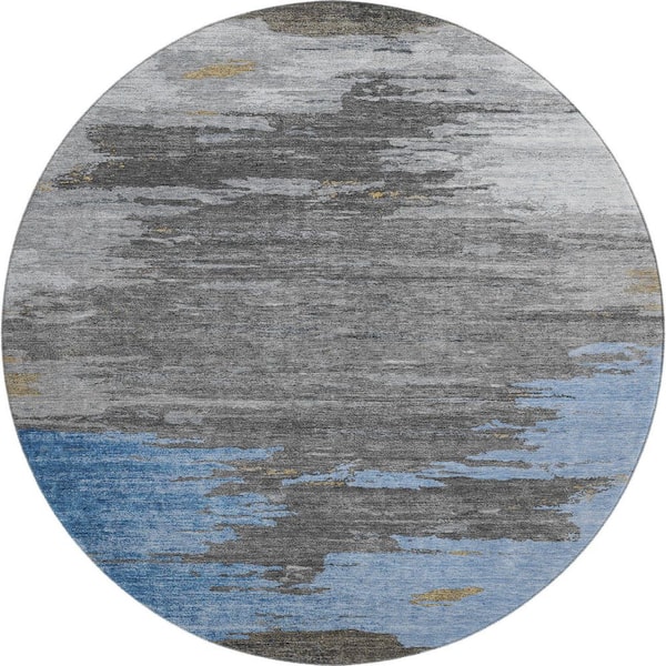 Mayfield Premium Machine Washable Abstract AMF2010 Denim 8 ft. x 8 ft. Round Rug