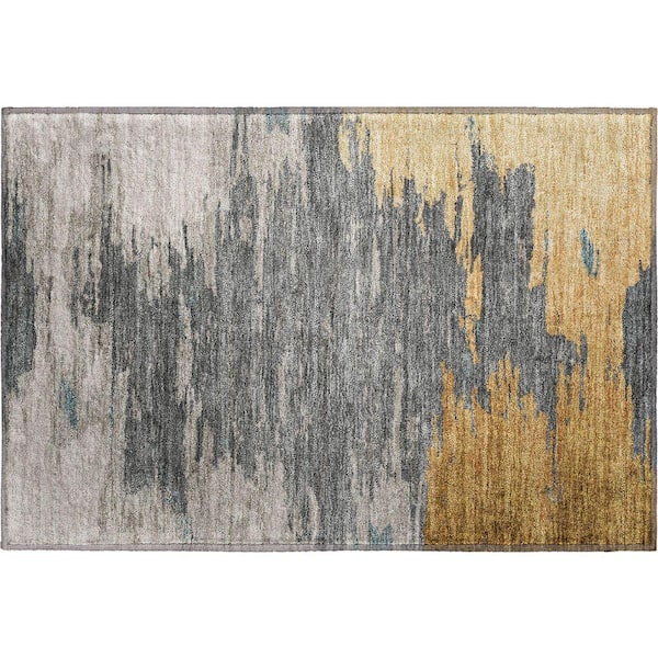 Mayfield Premium Machine Washable Abstract AMF2010 Gold 2 ft. x 3 ft. Accent Rug