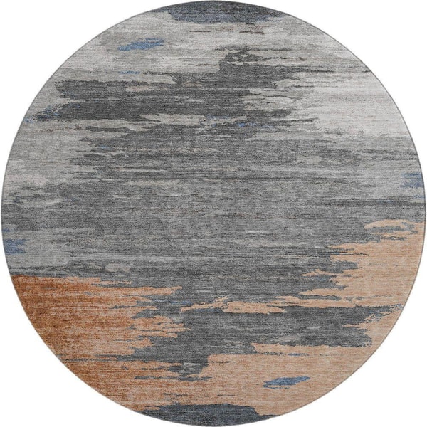 Mayfield Premium Machine Washable Abstract AMF2010 Paprika 8 ft. x 8 ft. Round Rug